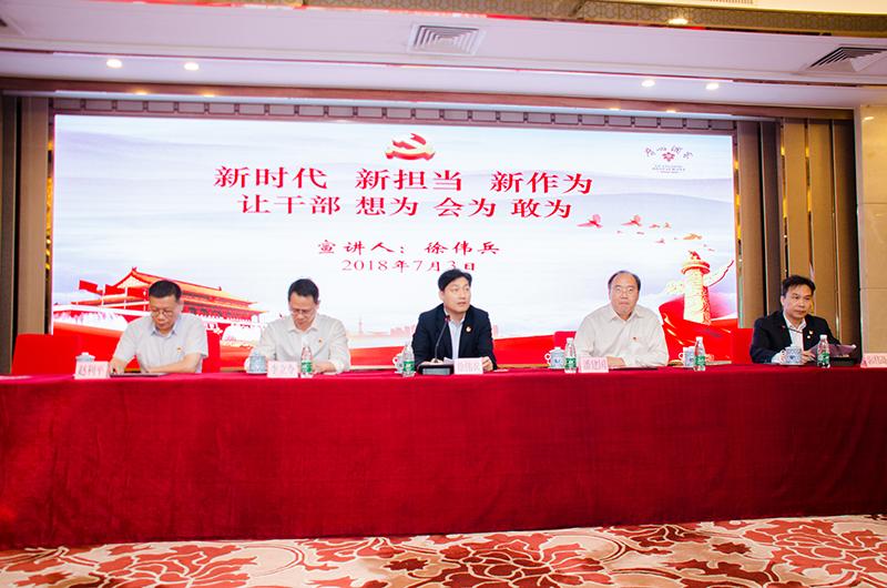 会上,集团党委书记、董事长徐伟兵同志为全体党员干部做了题为《新时代 新担当 新作为——让干部想为会为敢为》的专题党课。徐书记指出,中共中央办公厅印发的《关于进一步激励广大干部新时代新担当新作为的意见》(下简称《意见》),对建立激励机制和容错纠错机制,进一步激励广大干部新时代新担当新作为提出了明确要求。《意见》的制定实施,对充分调动和激发干部队伍的积极性、主动性、创造性,教育引导广大干部为决胜全面建成小康社会、夺取新时代中国特色社会主义伟大胜利、实现中华民族伟大复兴的中国梦不懈奋斗,具有十分重要的意义。他围绕把严管和厚爱都落实到位、把好“方向盘”用好“指挥棒”、锻造专业精进的“金刚钻”、让干部干得开心拼得安心三个方面提出了要求。他表示,集团将深入贯彻落实《意见》有关精神,进一步完善干部考核评价机制,改进考核方式方法,充分发挥考核对干部的激励鞭策作用;全面落实习近平总书记关于“三个区分开来”的重要要求,宽容干部在工作中特别是改革创新中的失误错误,旗帜鲜明为敢于担当的干部撑腰鼓劲;围绕建设高素质专业化干部队伍,强化能力培训和实践锻炼,同时把关心关爱干部的各项措施落到实处,积极推动集团新时代高质量发展。
