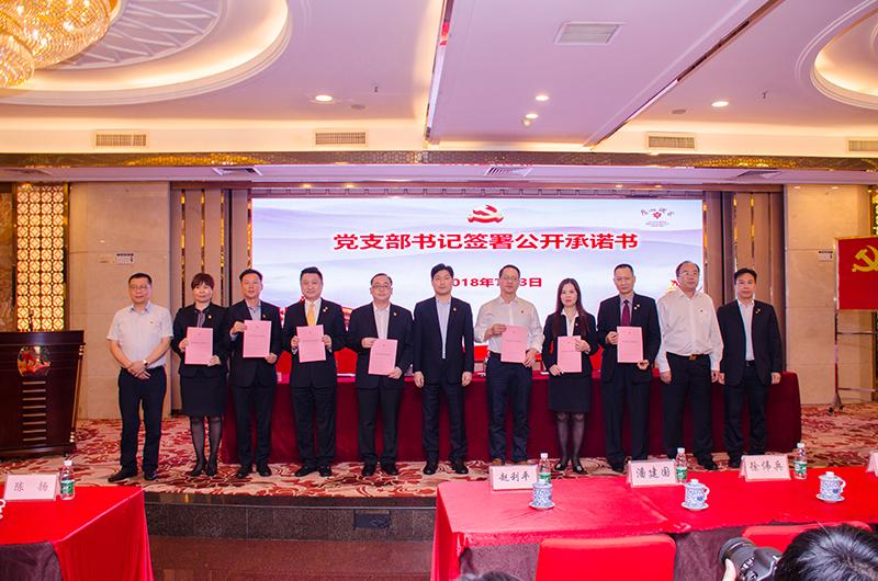 根据市委组织部的要求,为认真贯彻落实党的十九大关于加强基层党组织带头人队伍建设,进一步压实党支部书记责任、激发干事创业热情,大会还举行了“党支部书记签署公开承诺书仪式”。集团下属7个党(总)支部负责人依次上台,在承诺书上郑重签名。