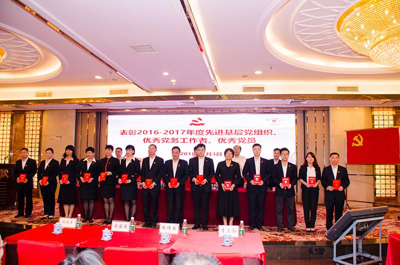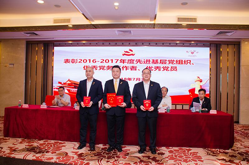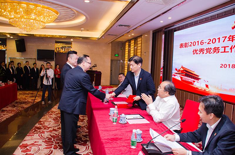 会上宣读了《关于表彰2016-2017年度先进基层党组织以及优秀党务工作者和优秀共产党员的决定》,文昌党支部荣获“先进党支部”称号,丁明等3名同志荣获“优秀党务工作者”称号,肖海辉等14名同志荣获“优秀共产党员”称号。集团班子成员分别为受到表彰单位及个人颁发荣誉证书。