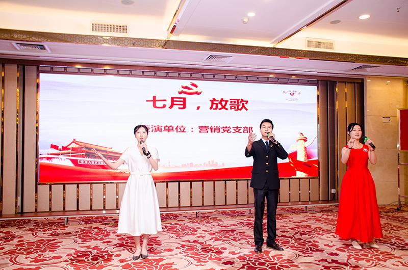 表彰结束后,全体人员观看了“庆七一•颂党恩”集团党群诗歌朗诵节目。来自7个基层党组织的23位同志先后朗诵了《七月放歌》、《党旗,我为你骄傲》、《让梦想飞》、《党旗下成长》、《有一首歌》等现代诗歌。声情并茂、情节感人的演出,讴歌了党的光辉历程,抒发出浓浓的拥党情和深深的爱国心,引起了在场每一位党员干部的强烈情感共鸣。