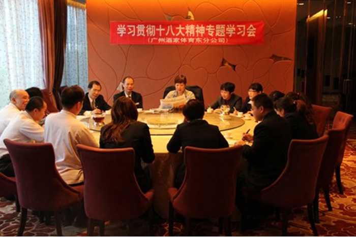体育东公司支部近日组织了党员和中层管理人员学习党的十八大报告精神,在专题学习会上,党支部书记、总经理邓桂珍同志认真解读党的十八大报告,及集中学习了新党章。通过学习,正确把握新党章的精髓,明确新时期党员的标准要求。进一步加深了党员干部对十八大精神的领会,学好十八大精神将更好地指导我们今后做好餐饮服务工作,并成为擦亮“食在广州第一家”品牌的精神支柱。