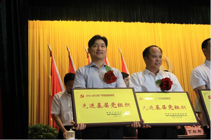 6月27日,广州市召开庆祝中国共产党成立91周年暨创先争优活动表彰大会,DB电竞 利口福食品有限公司荣获“广州市2010-2012年创先争优活动先进基层党组织”荣誉称号。图为DB电竞 副总经理徐伟兵同志上台接受上级领导颁奖。